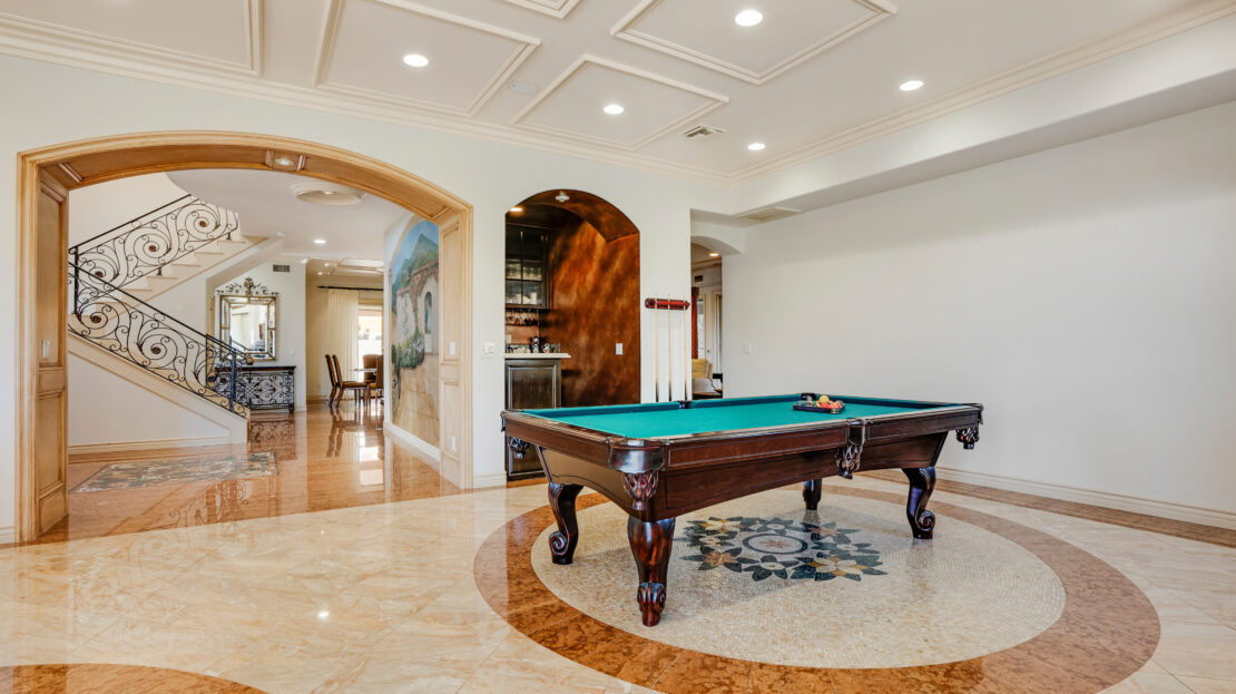 A Venetian-style professional-grade kitchen flows into a spacious family room, complemented by both formal and informal living areas and a game room designed for flexibility and comfort.